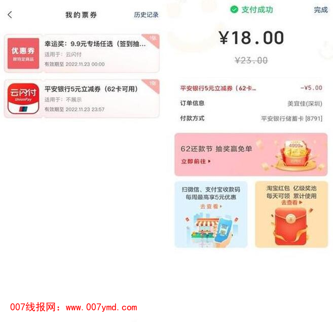 本文一共2个云闪付活动,首次在云闪付绑定平安储蓄卡(电子账户也行)送5元券