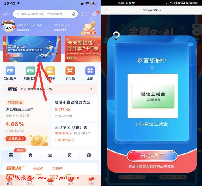 打开浦发银行APP首页顶部“全球goal集卡最高抽携程5000元礼品卡”进入活动