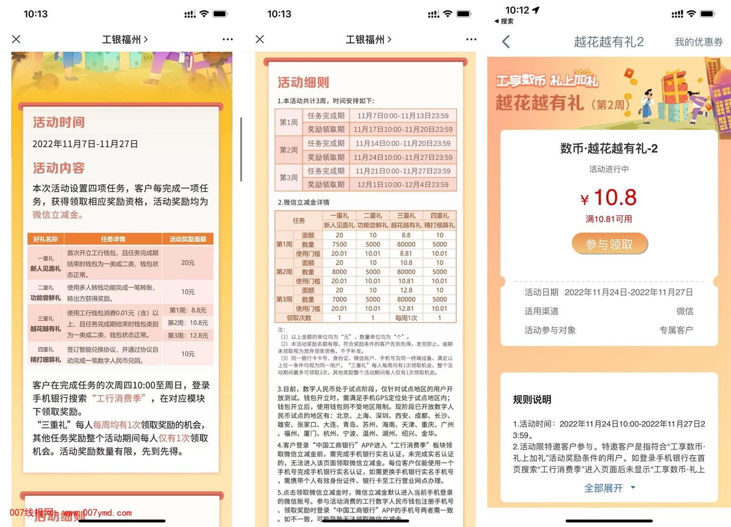 工行数币用户每周消费领立减金