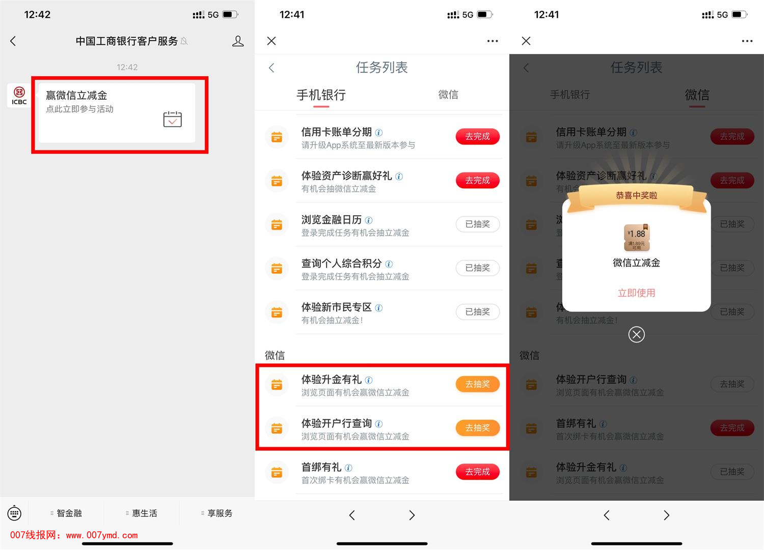 微信扫码进入->点击推文进入->完成3个浏览任务抽立减金