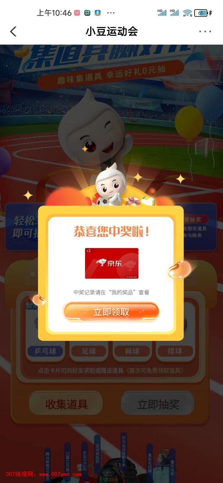 农业银行小豆运动会抽2元京东E卡、腾讯体育会员等