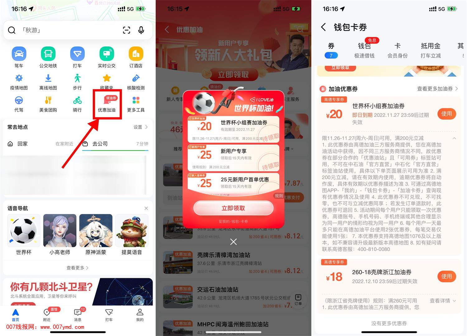 高德地图APP首页“优惠加油”->进入自动弹出200减20元券直接领取->找到带有可用券标识的加油站即可抵扣