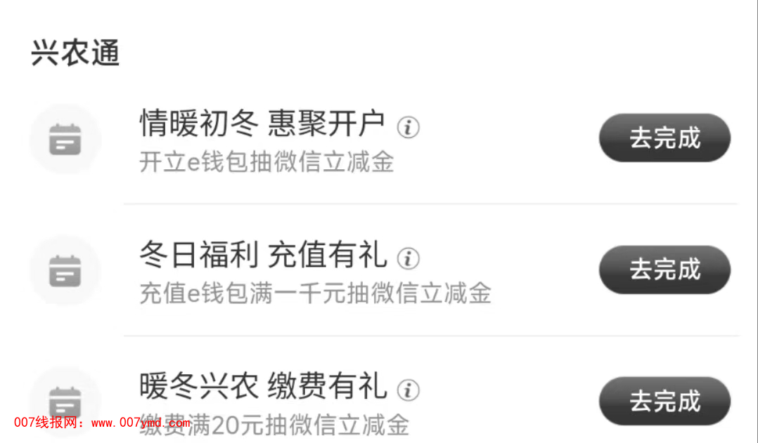工银兴农通撸60元立减金(开户/充值/缴费)