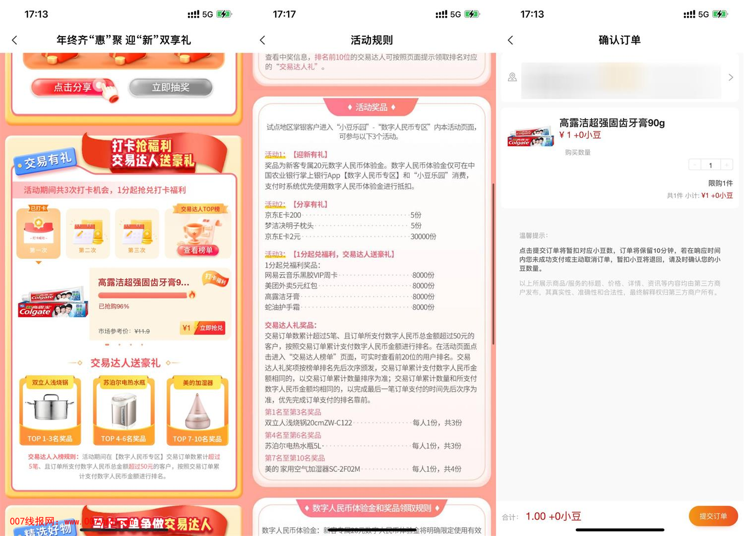 微信打开地址->跳转到农行APP->每天进入页面自动打卡,可1元撸实物包邮或0.01元撸网易云音乐周卡->新用户还有20元数币红包可撸实物