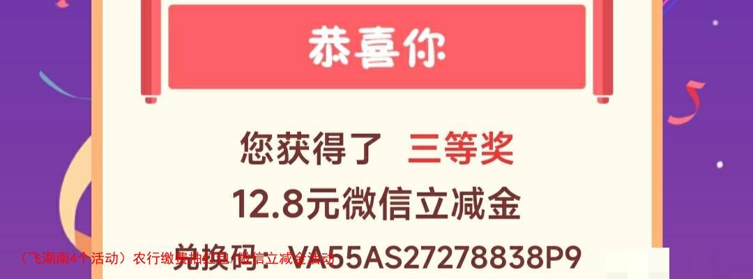 (飞湖南4个活动)农行缴费抽红包/微信立减金活动