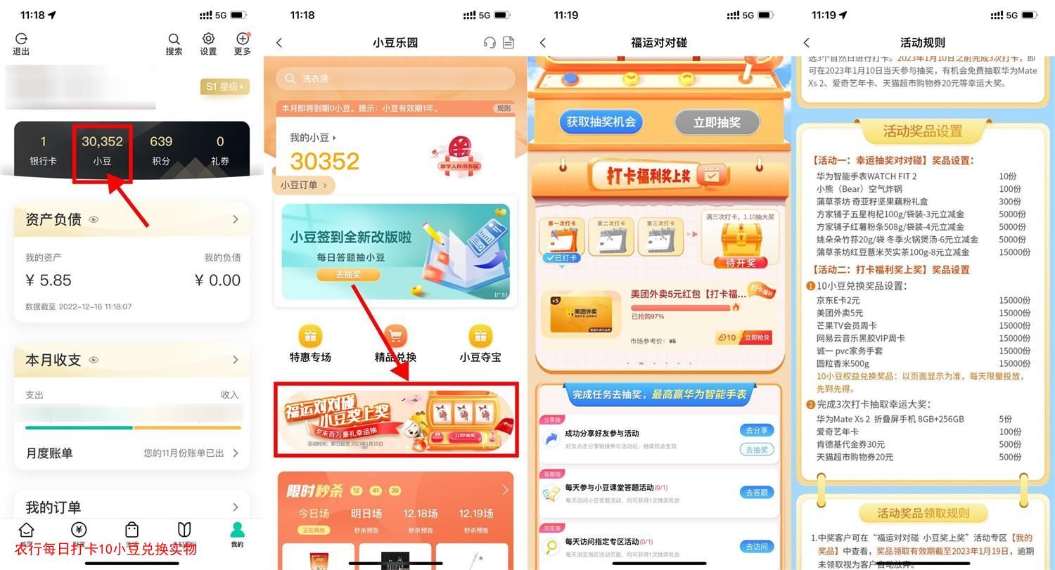 农行APP->我的->小豆->福运对对碰->每天进入使用10小豆兑换美团外卖5元券、网易云音乐周卡、各类实物等,每天限量!