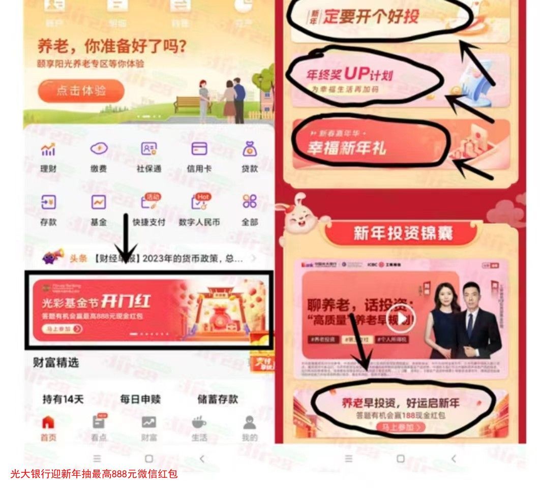- 1光大银行富指一方简单浏览抽0.5-188元微信红包 亲测中0.5元