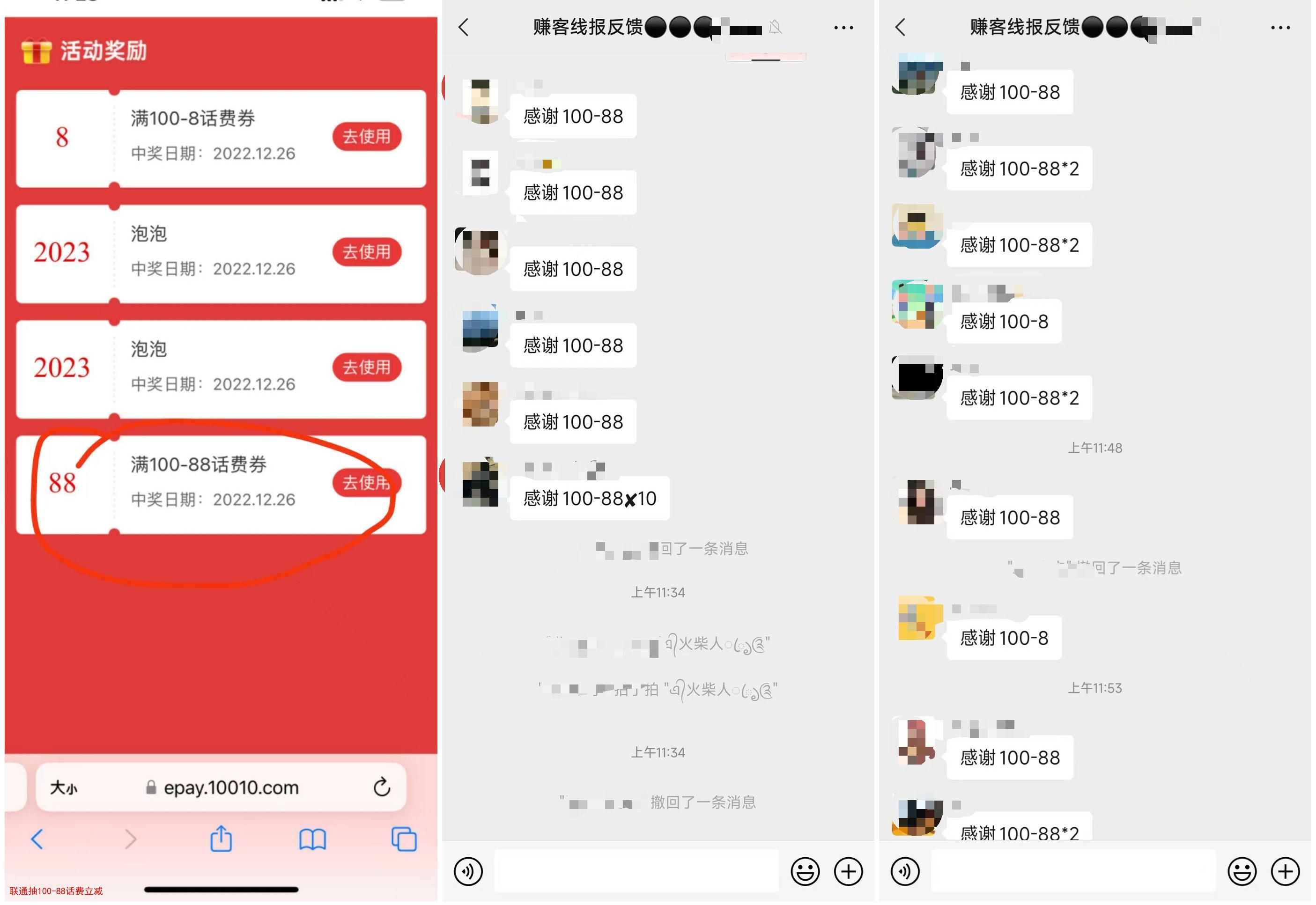 微信扫码进入活动,三次机会抽100-88话费立减(非必中)