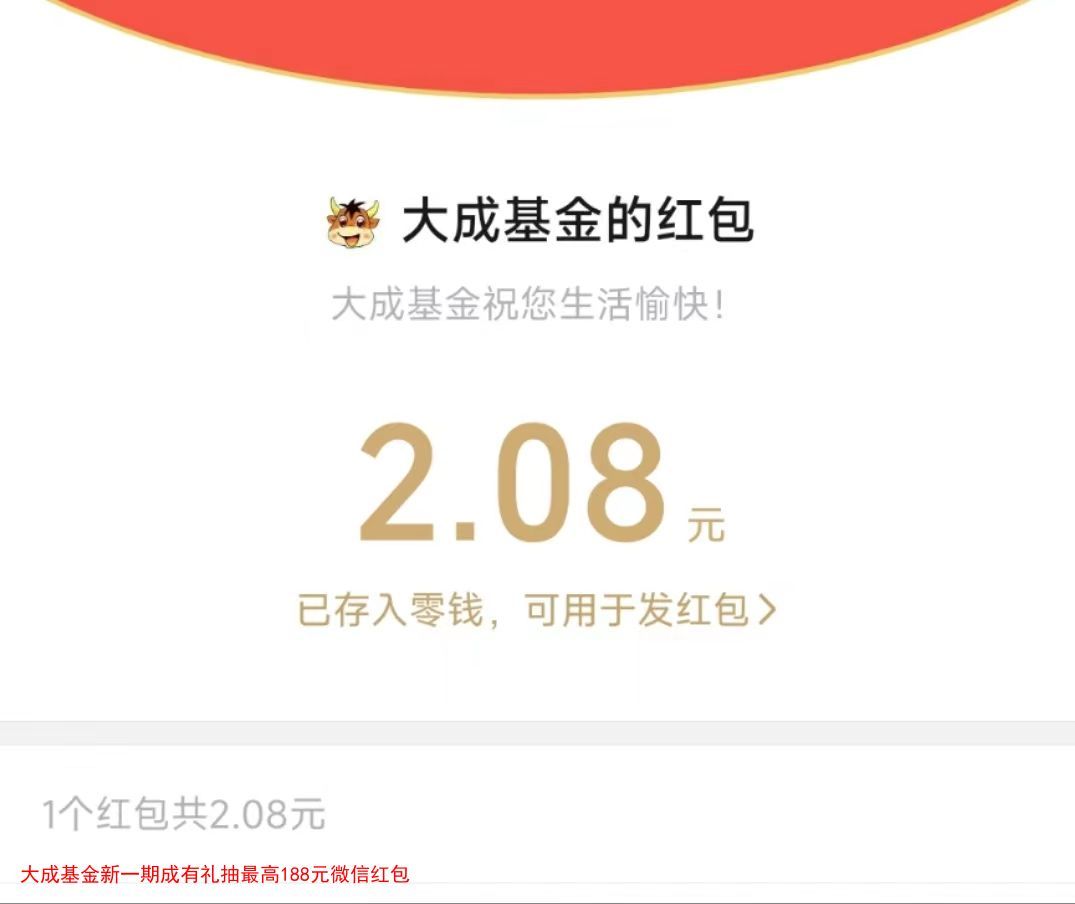 大成基金新一期成有礼抽最高188元微信红包