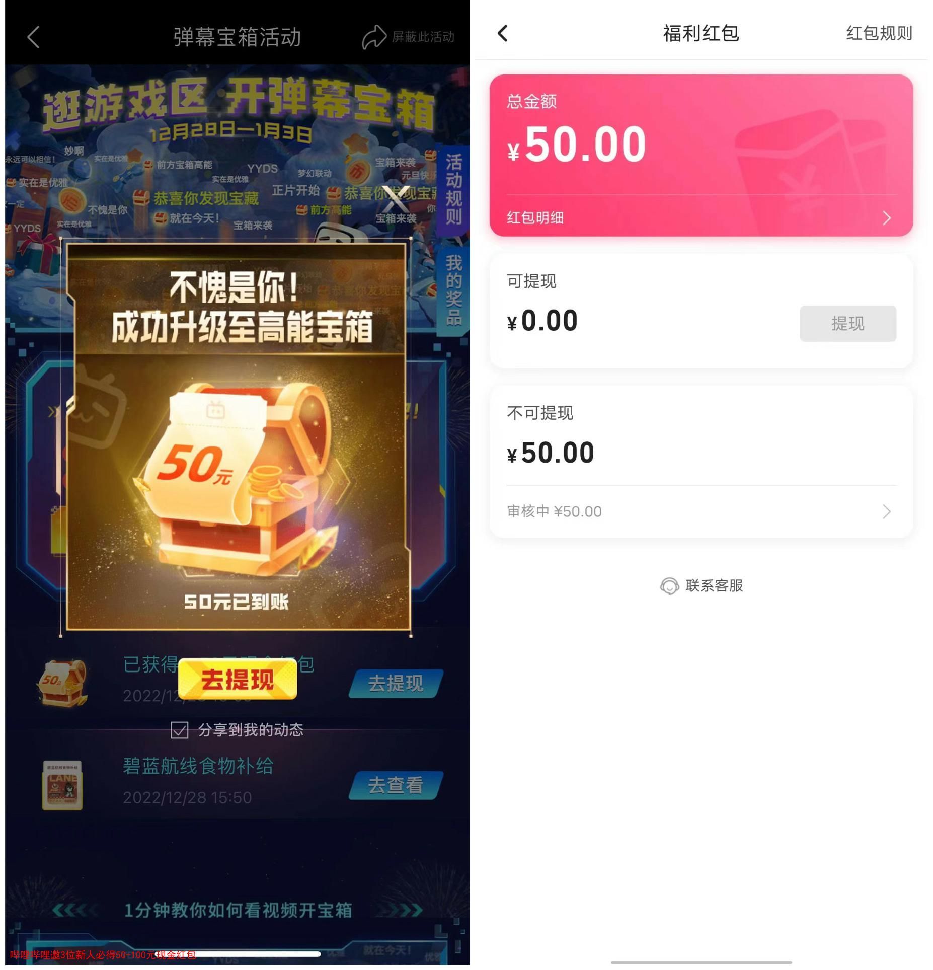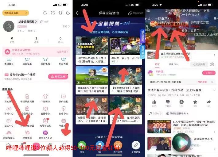 哔哩哔哩邀3位新人必得50-100元现金红包