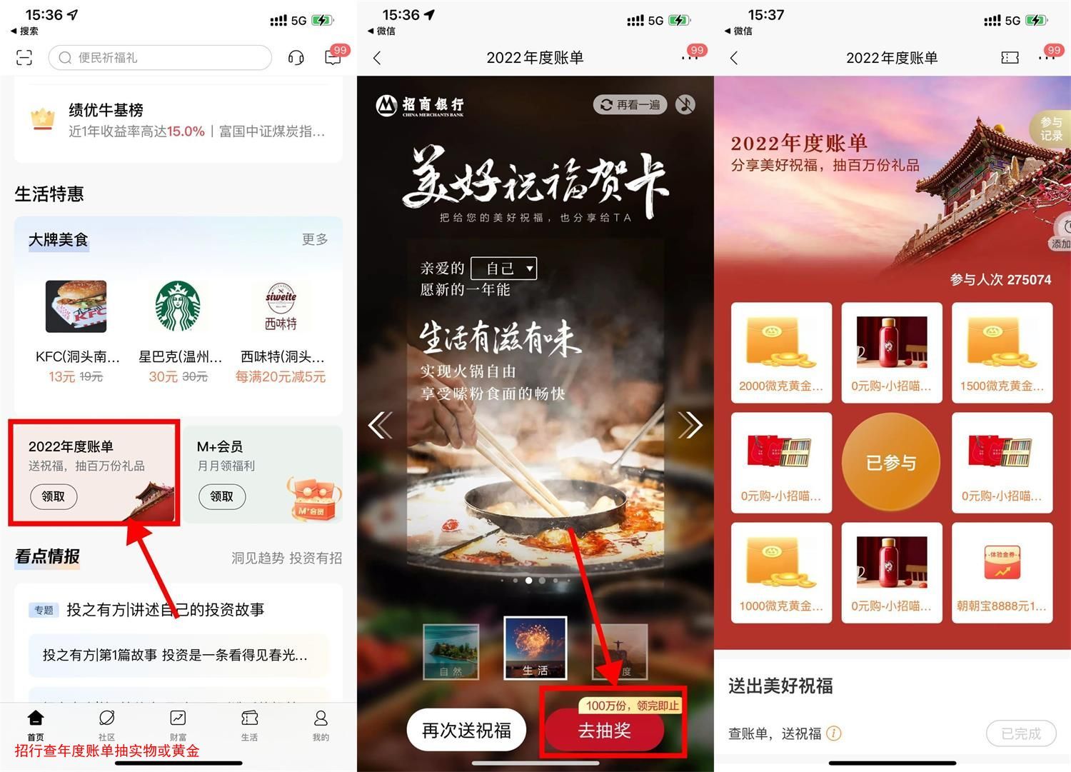 招行查年度账单抽实物或黄金