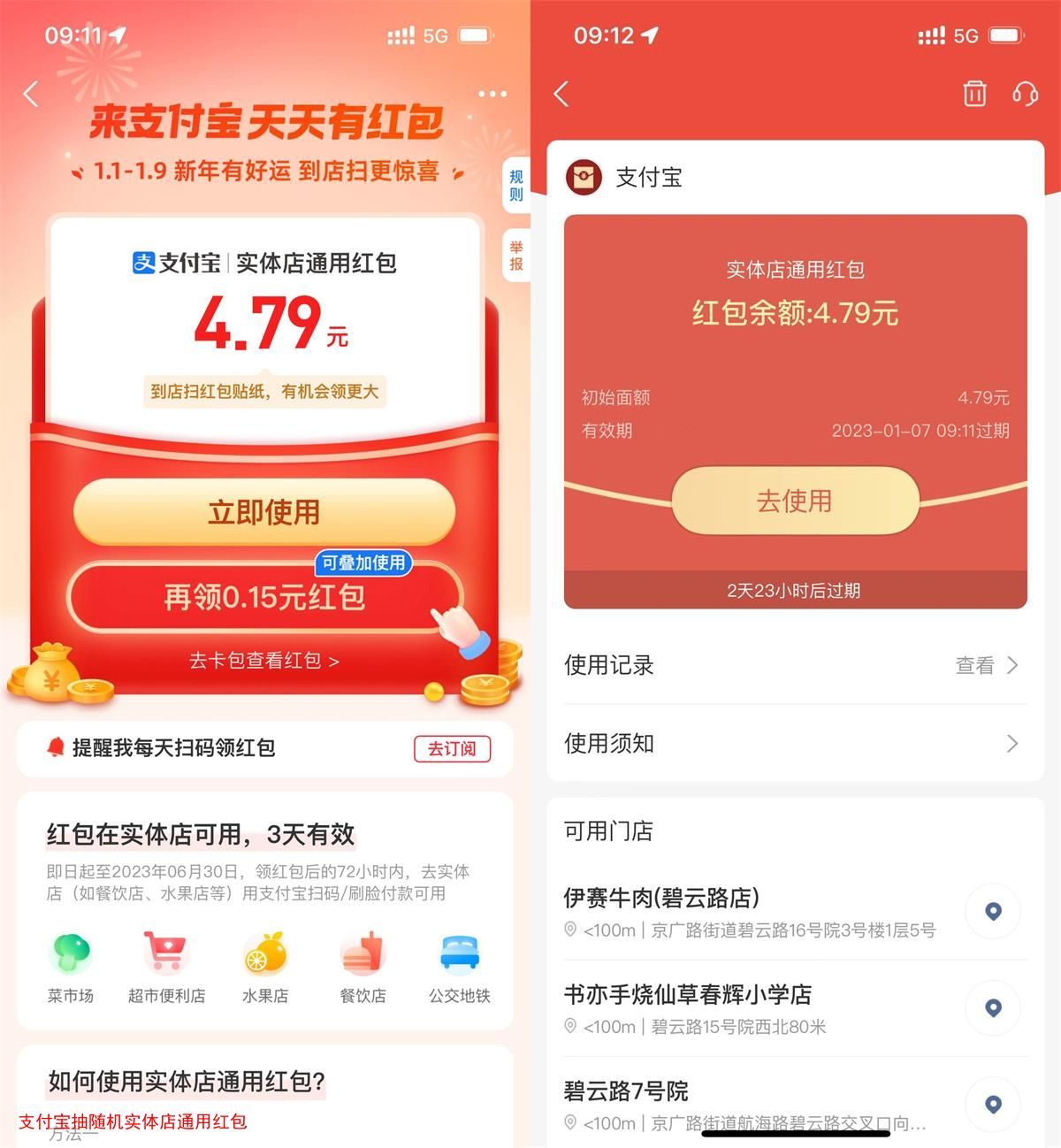 支付宝抽随机实体店通用红包