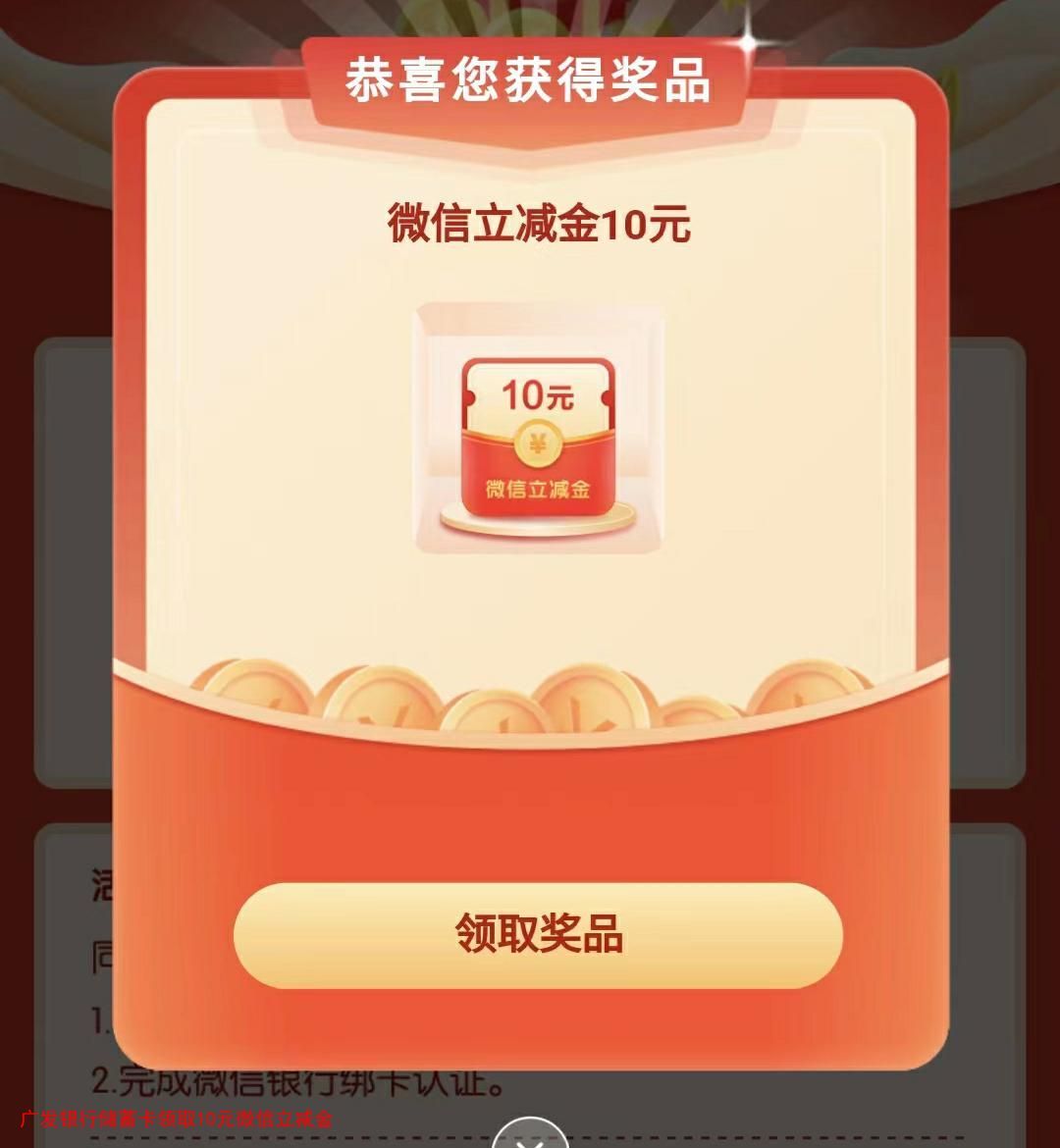 广发银行储蓄卡领取10元微信立减金