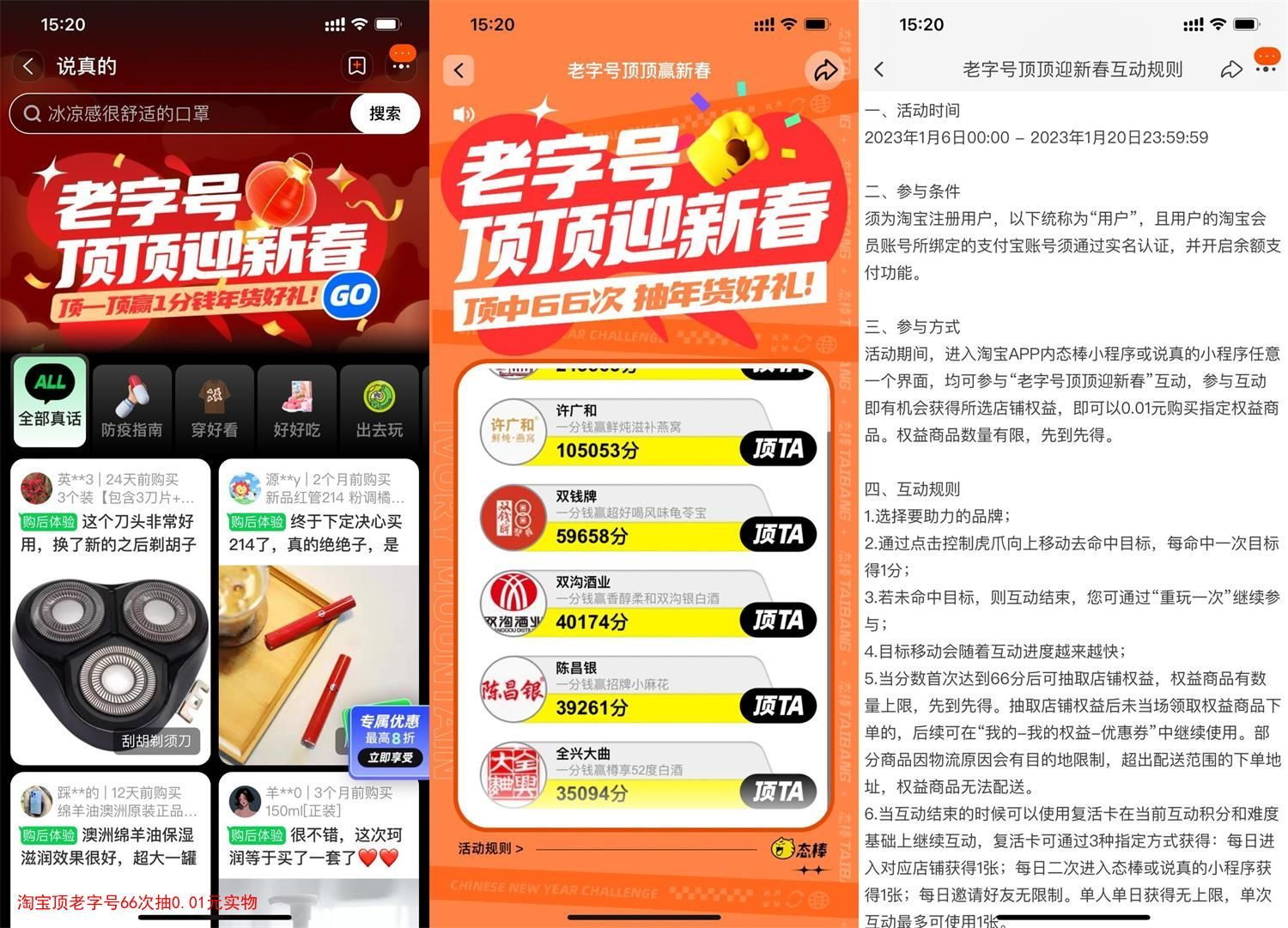淘宝顶老字号66次抽0.01元实物