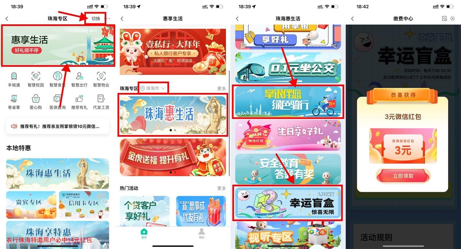 农行珠海特邀用户必中14元红包