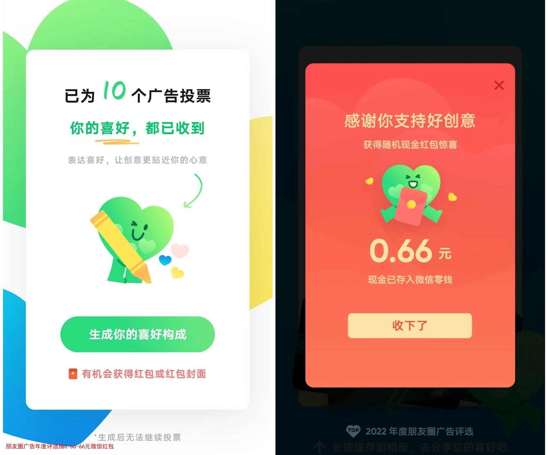 只有部分账号参与投票生成喜好构成后会弹出抽奖,亲测0.66元秒到微信零钱