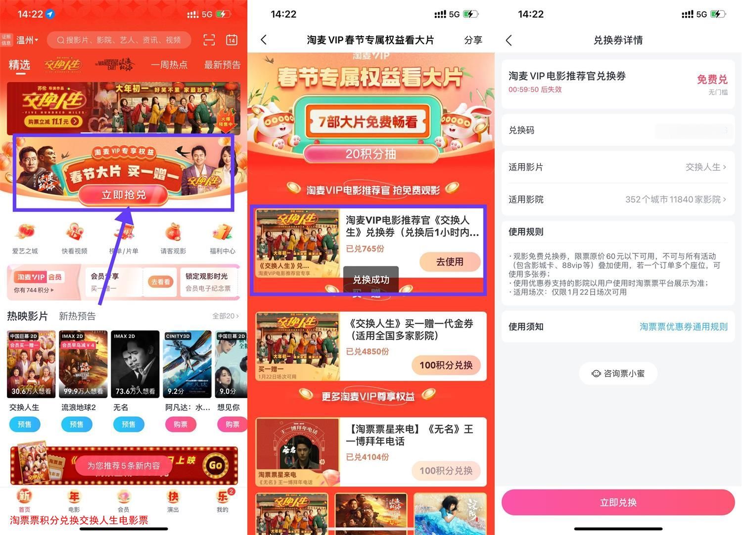 淘票票积分兑换交换人生电影票