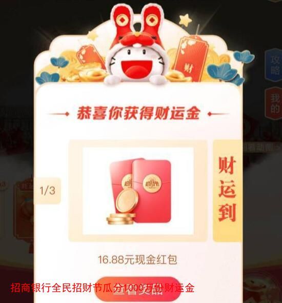 招商银行全民招财节瓜分1000万份财运金