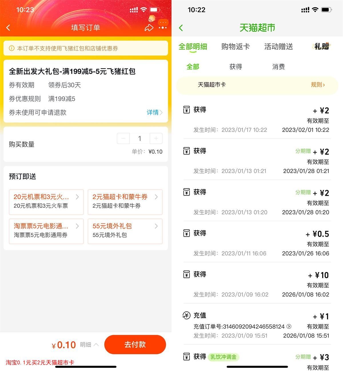 淘宝0.1元买2元天猫超市卡
