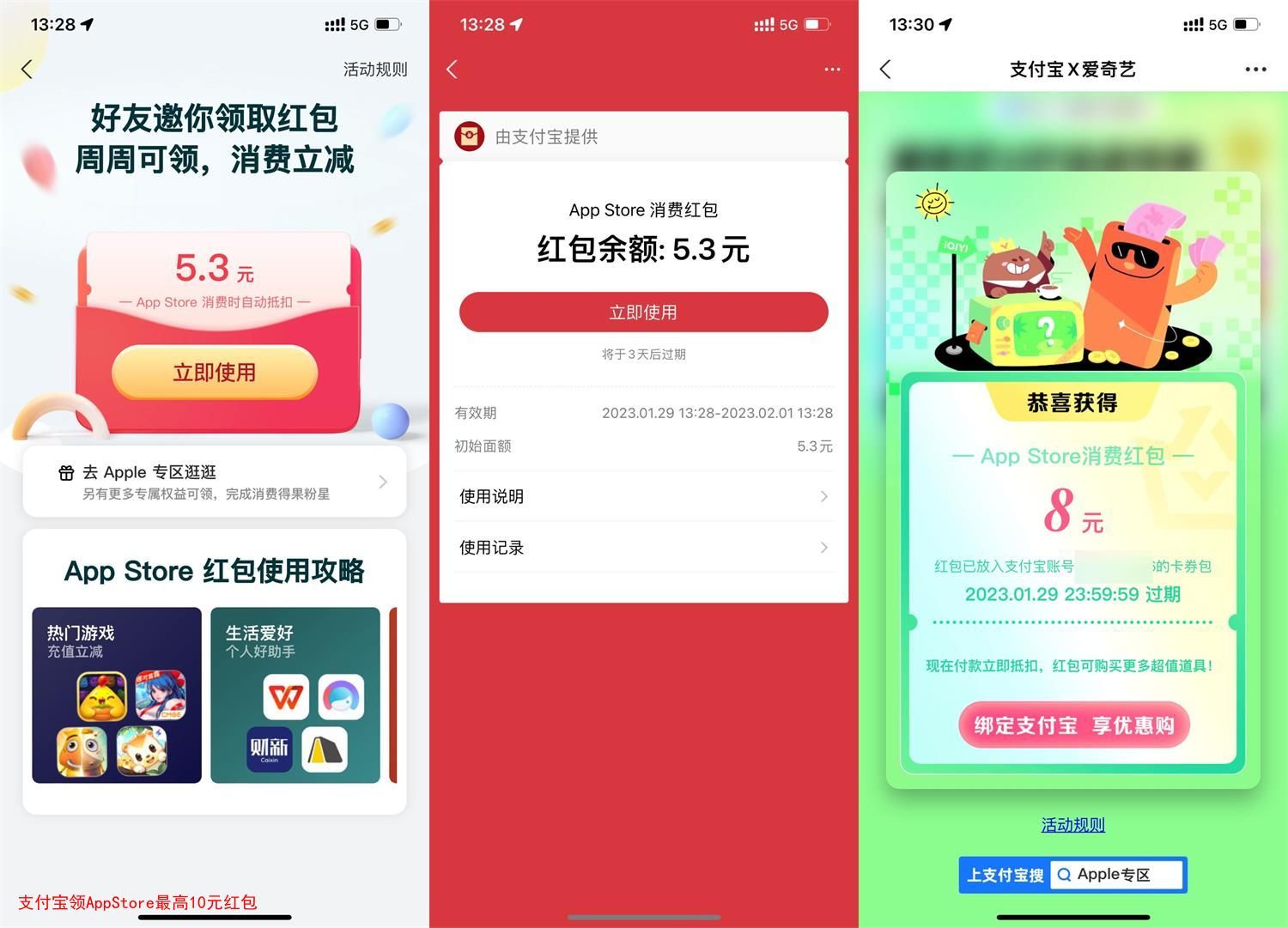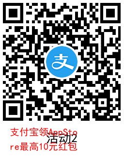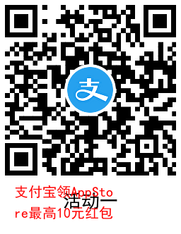 支付宝APP扫码->立即领取->红包可在App Store支付消费时自动抵扣