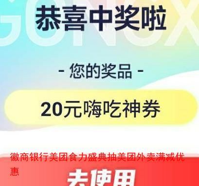 徽商银行美团食力盛典抽美团外卖满减优惠