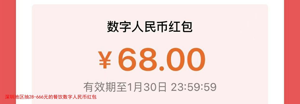 深圳地区抽28-666元的餐饮数字人民币红包