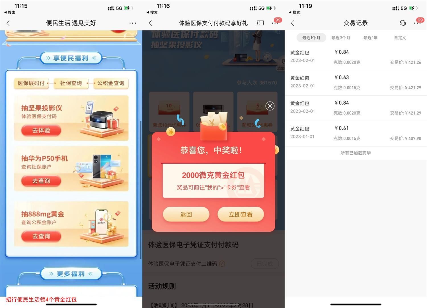 招行APP扫码->下拉完成3个查询抽3个黄金红包->在“招行APP-我的-右上角会员”再领个黄金红包,最后全部卖掉就行了