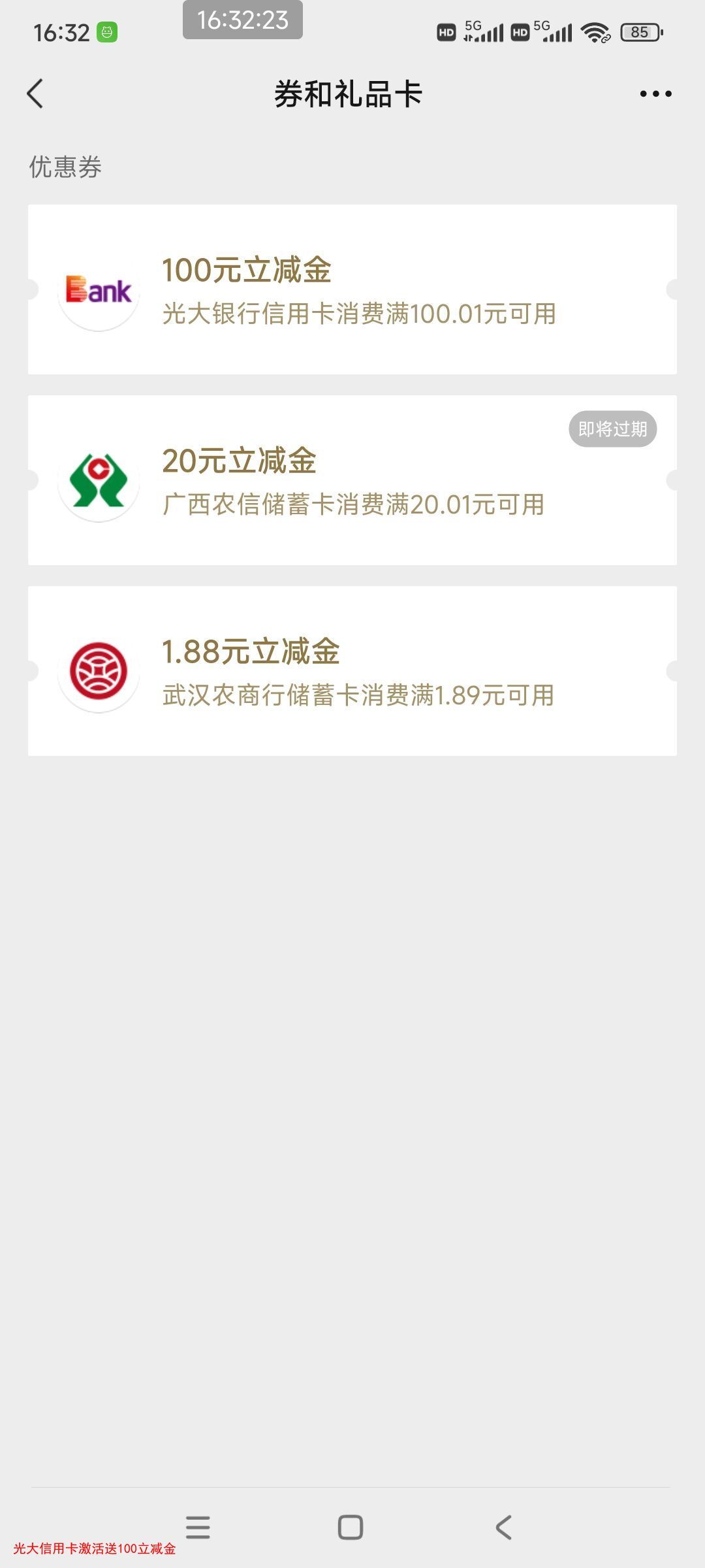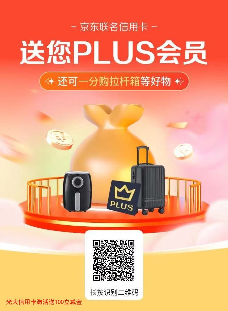光大银行信用卡激活送100立减金,最近有水,有需要的可以申请下,薅羊毛也不错。扫码申请选择自己的地区,选择“光大惊喜联名卡”,别选择错了。
