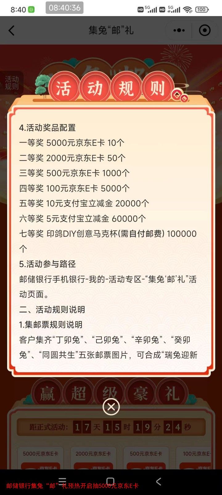 邮储银行集兔“邮”礼预热开启抽5000元京东E卡