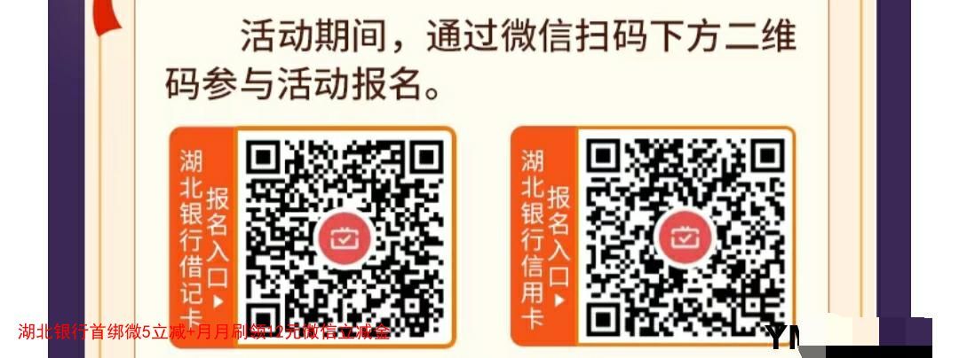 湖北银行首绑微5立减+月月刷领12元微信立减金