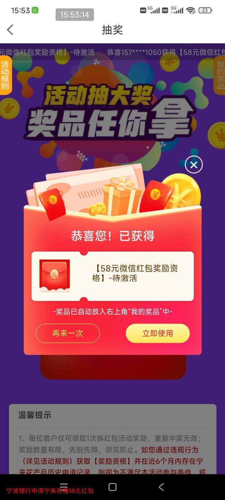 宁波银行申请宁来花撸58元红包