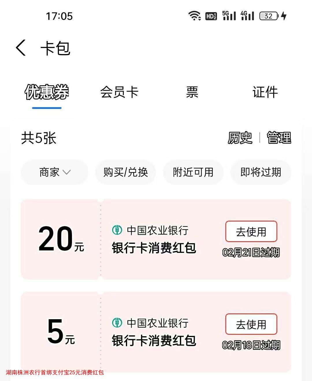 湖南株洲农行首绑支付宝25元消费红包
