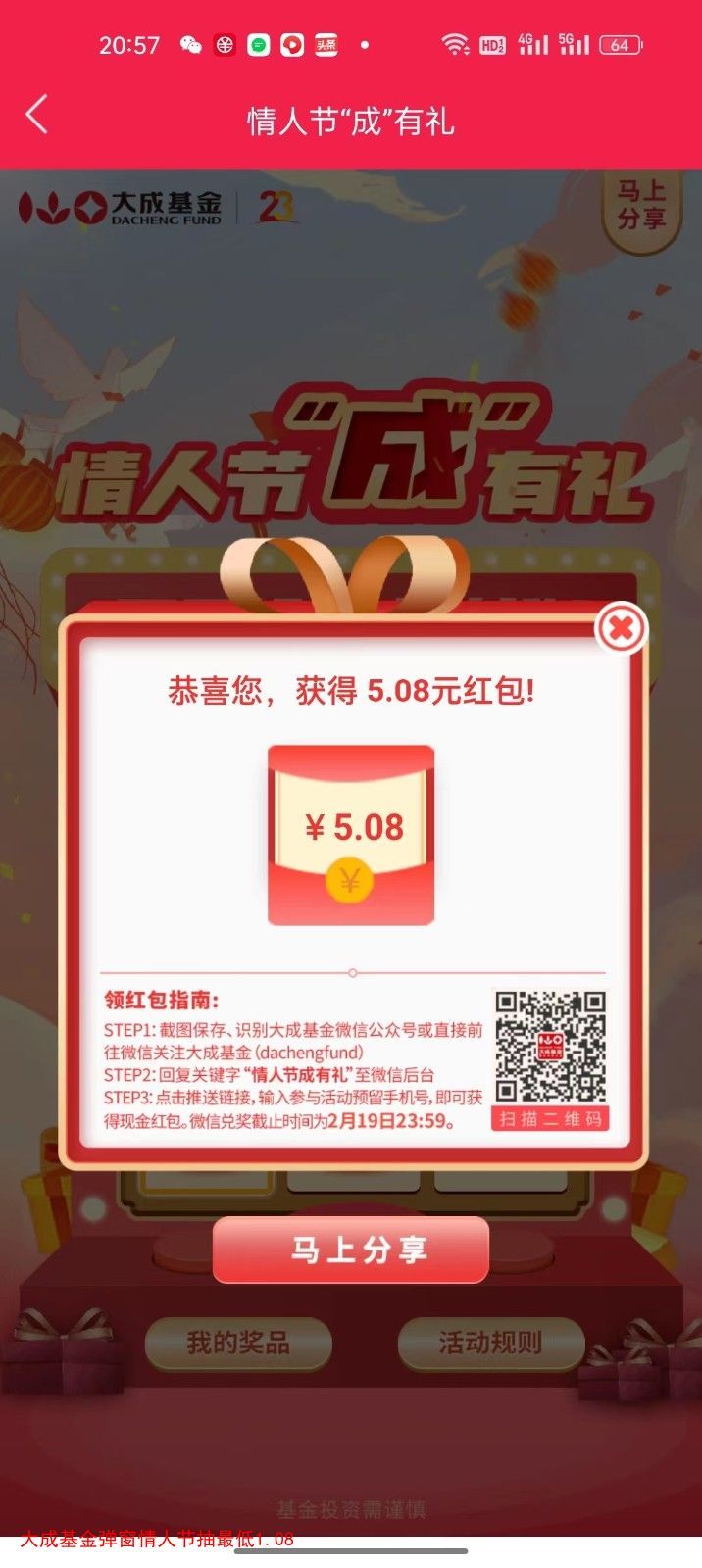 大成基金app弹窗情人节,找不到的点资产-点头像-下拉点活动中心进最低1.08