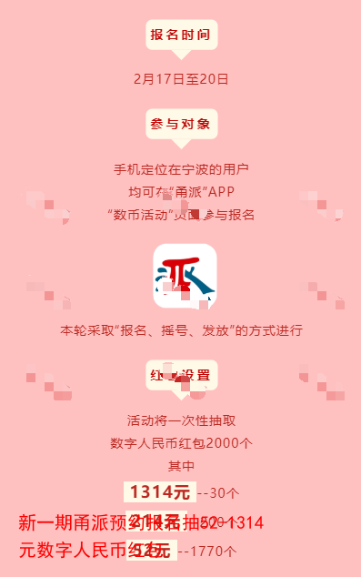 新一期甬派预约报名抽52-1314元数字人民币红包