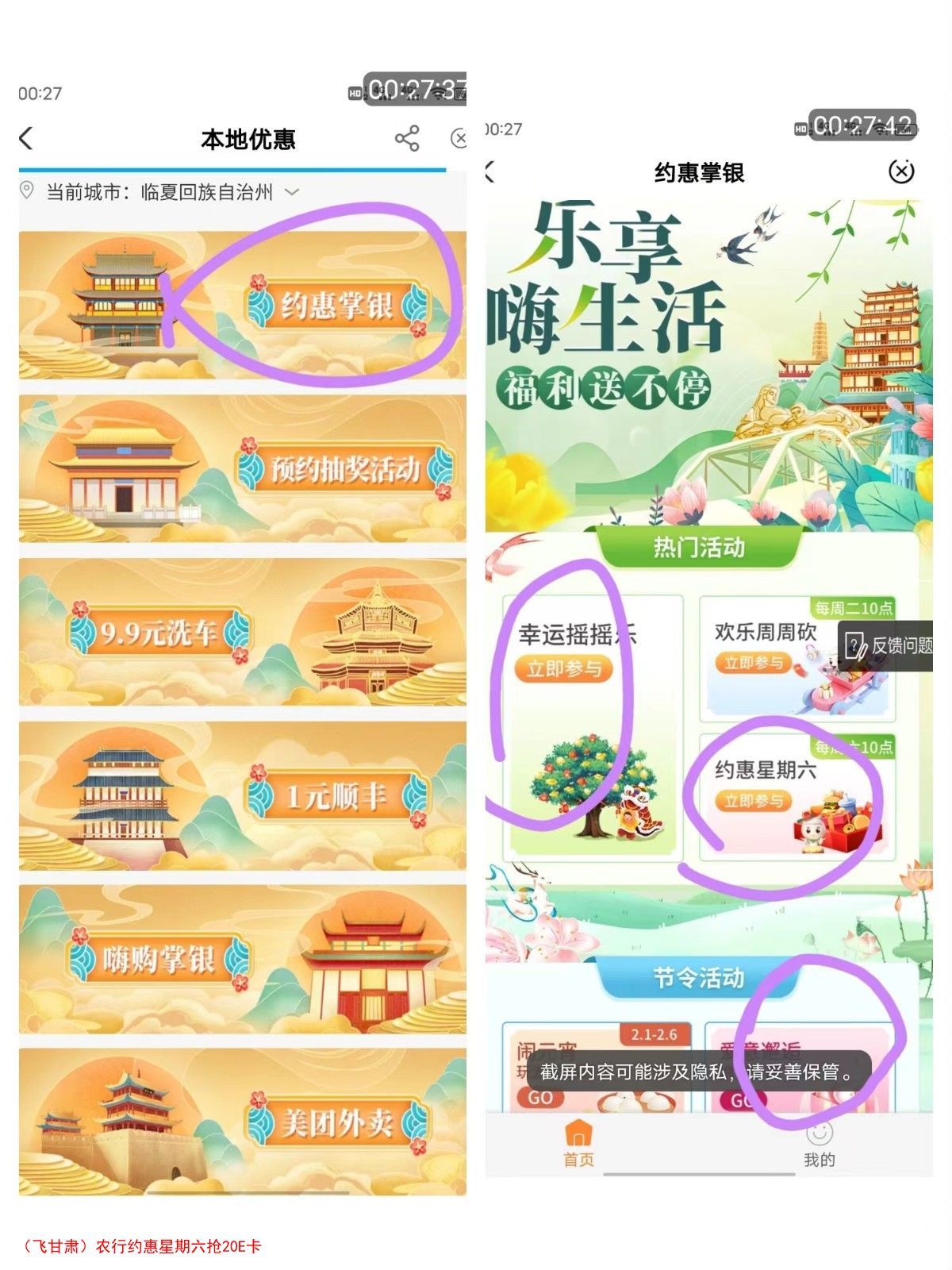 飞甘肃本地生活三个活动,今天周六10点一元购20ek上周六买过的不行,一个月一次——
