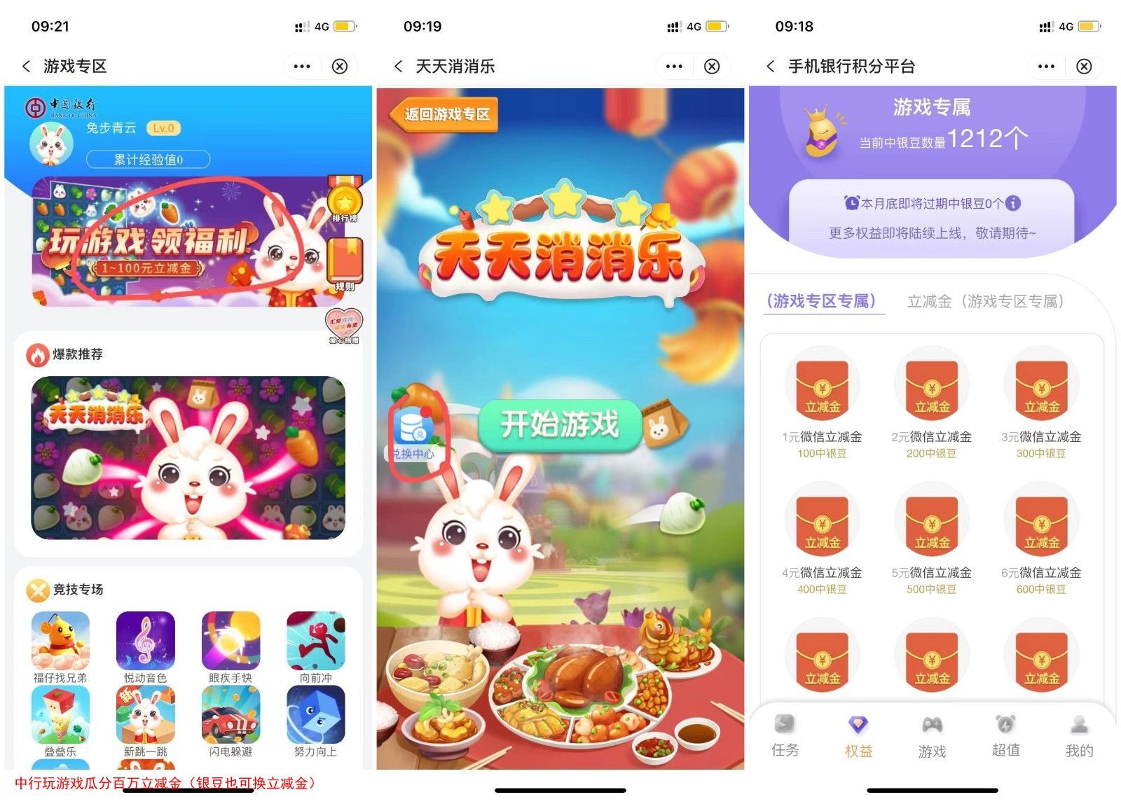 中行玩游戏瓜分百万立减金(银豆也可换立减金)