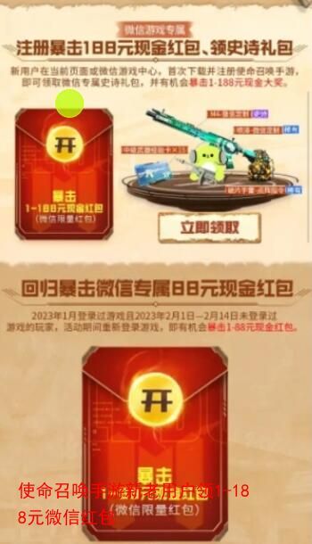 新用户注册领1-188元,老用户先领红包看下有资格,如果提示今天未登录就可以参加,下载先锋APP秒玩使命召唤登录下再领红包,邀请2个新人注册还能匿名领3元。