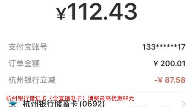 杭州银行借记卡(含直销电子)消费最高优惠88元
