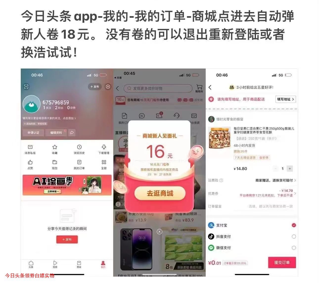 今日头条都去试试,没弹窗的点我的订单关联一下,然后再重进试试————
