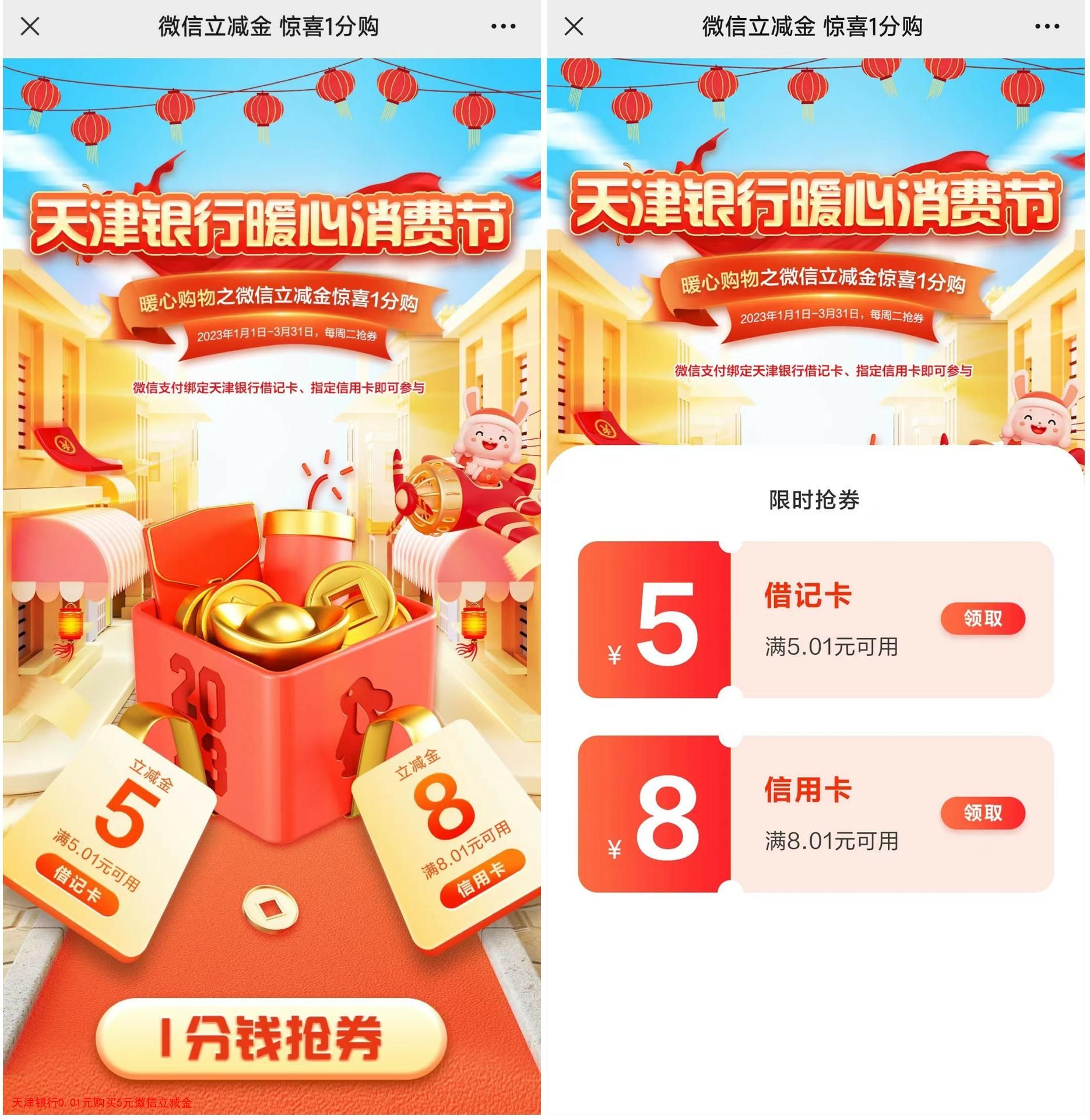 本文进入活动可以参与0.01元购买天津银行5元微信立减金