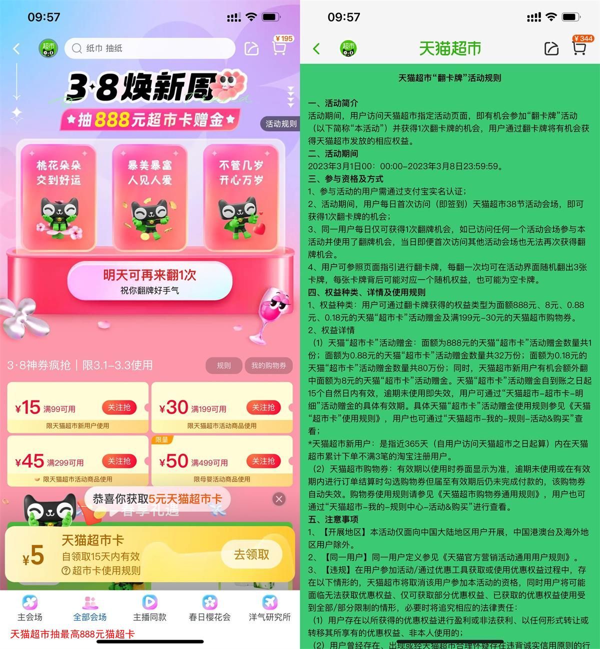 淘宝APP扫码->直接翻牌抽猫超卡->部分人底部还会弹出3~8元猫超卡