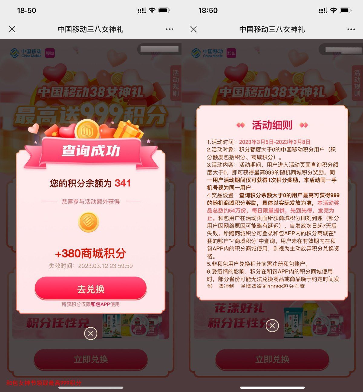 和包女神节领取最高999积分