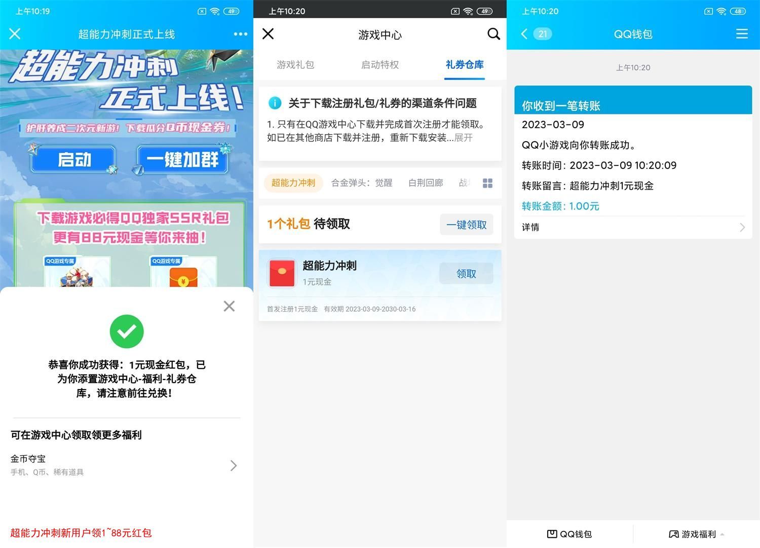 QQ打开地址->下载注册游戏->返回页面抽1~88元红包,下拉页面进入卡券仓库激活秒到