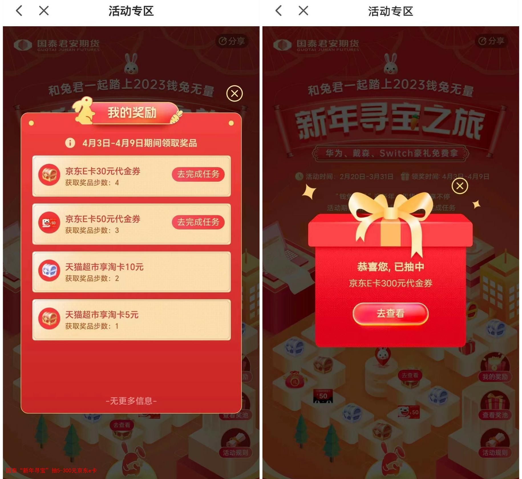 国泰“新年寻宝”抽5-300元京东e卡