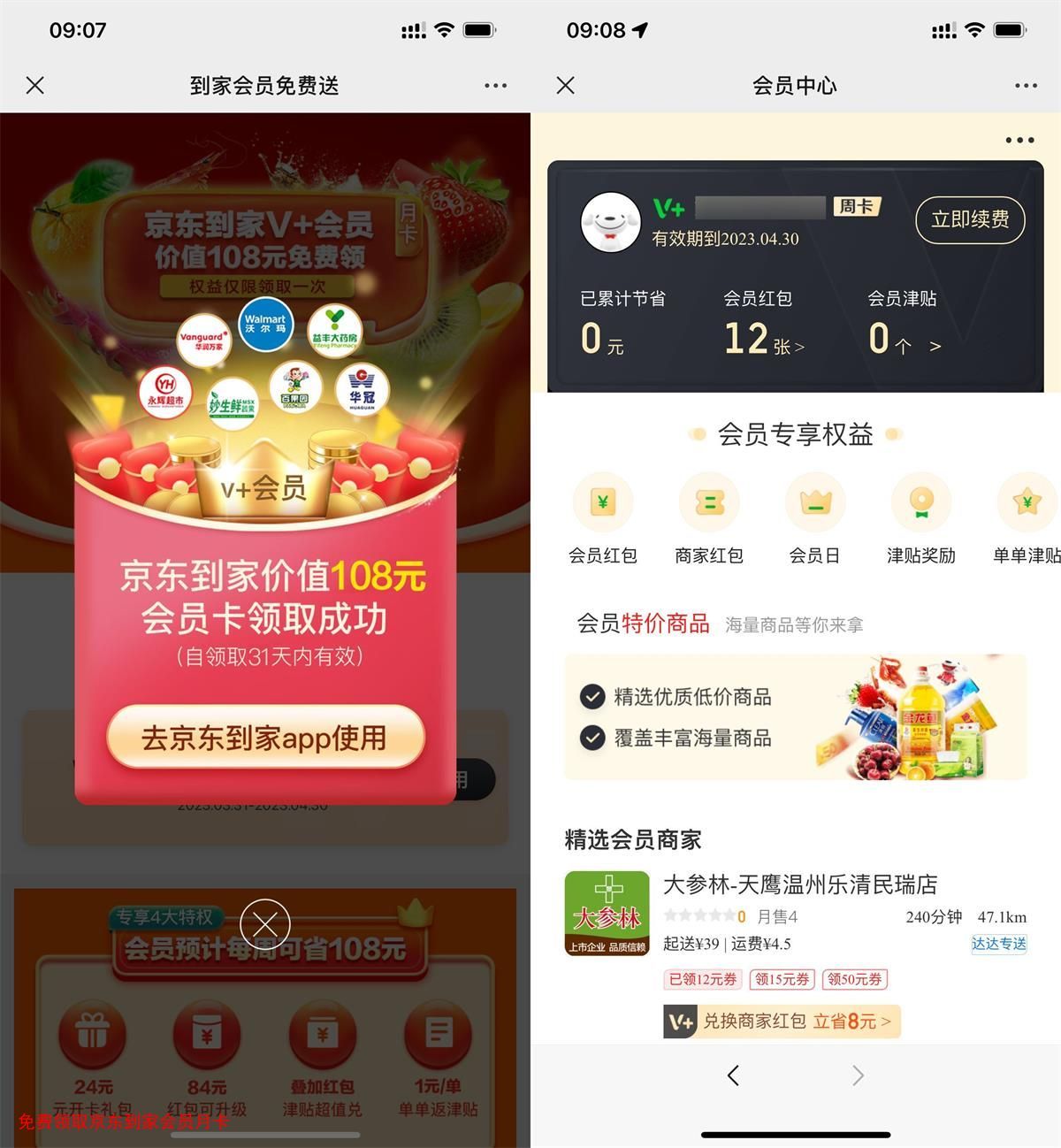 免费领取京东到家会员月卡