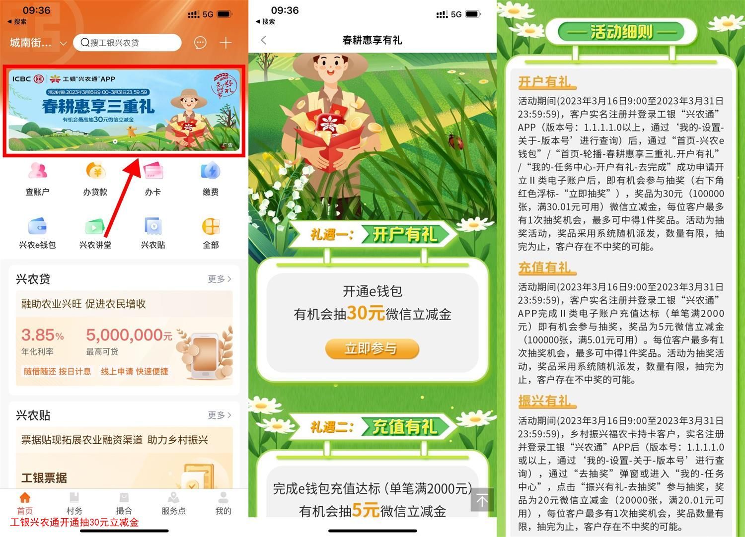 1、应用商店下载“工银兴农通”APP->首页“兴农e钱包”->根据页面提示开通