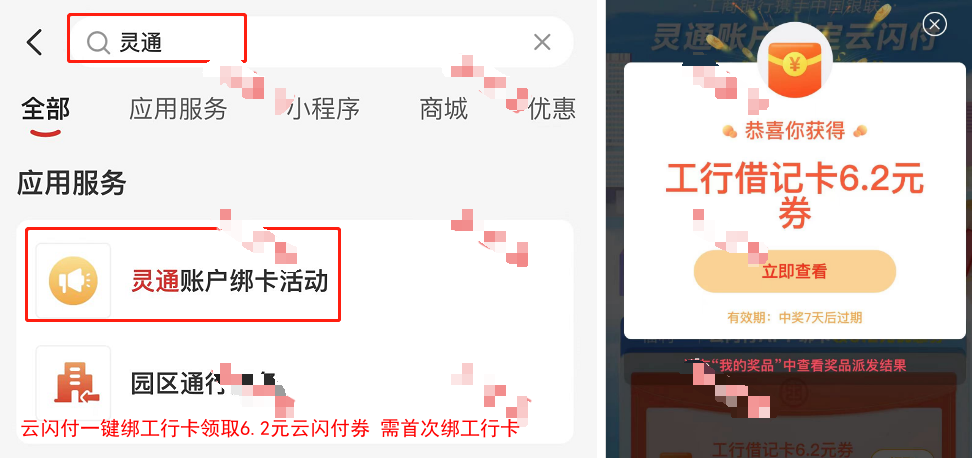 云闪付一键绑工行卡领取6.2元云闪付券 需首次绑工行卡
