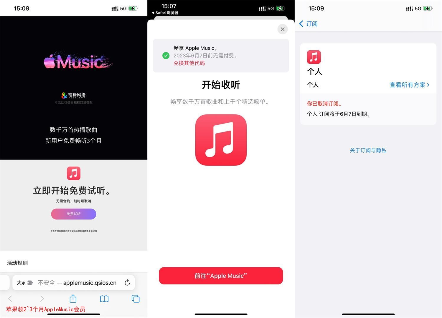 苹果领2~3个月AppleMusic会员