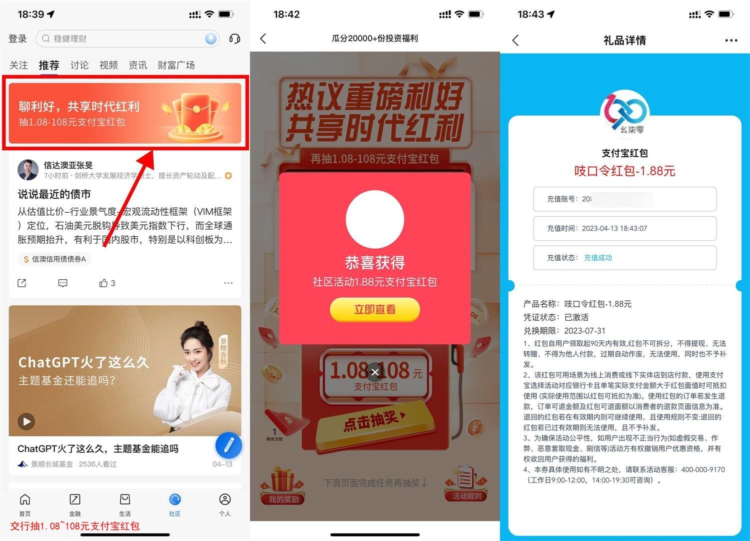 - 1光大银行富指一方简单浏览抽0.5-188元微信红包 亲测中0.5元